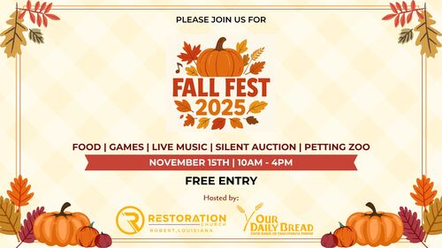 Fall Fest 2025 is all about family, fun, and community! With free admission, you can enjoy a day of games, live music, car show, prizes, petting zoo, silent auction, and more.